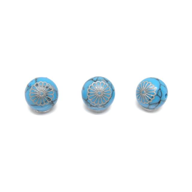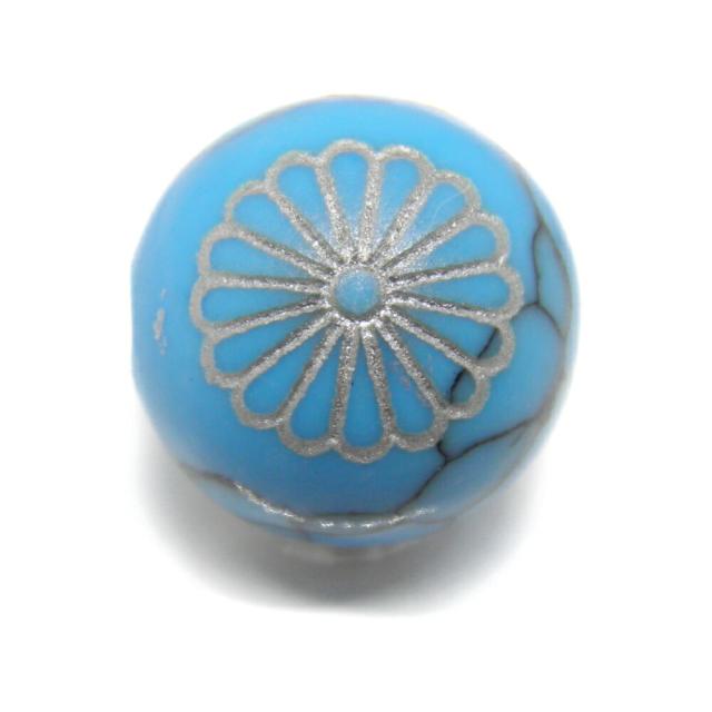 菊花紋章 ターコイズ (銀) 12mm 線彫り【彫刻ビーズ・彫りビーズ】