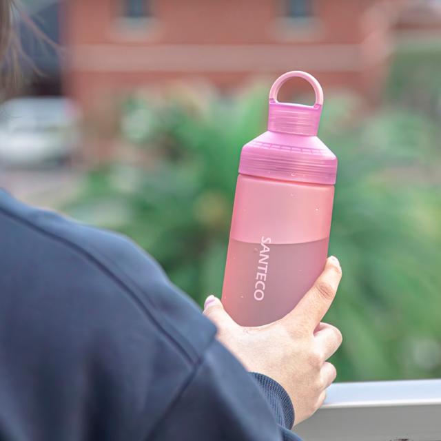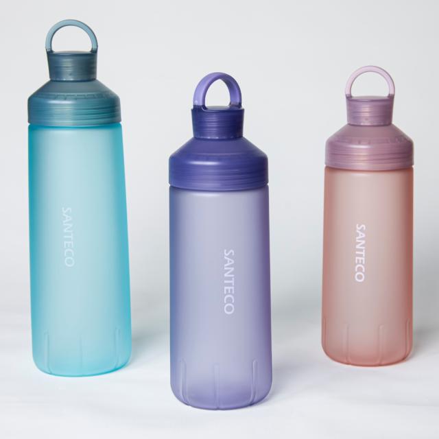 蓋部分まで全て半透明で、パステルカラーが光を取り込みキラキラと優しく演出する様子が幻想的です。持った感じの質感も高く、SNS映えすること間違いなしです。細口ボトルなので、ペットボトルの様にゴクゴクと飲みやすいのも嬉しいポイントです。