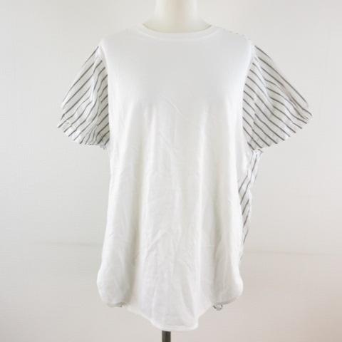 【中古】アメリカンホリック AMERICAN HOLIC カットソー 半袖 ストライプ 白 M *T774 レディース