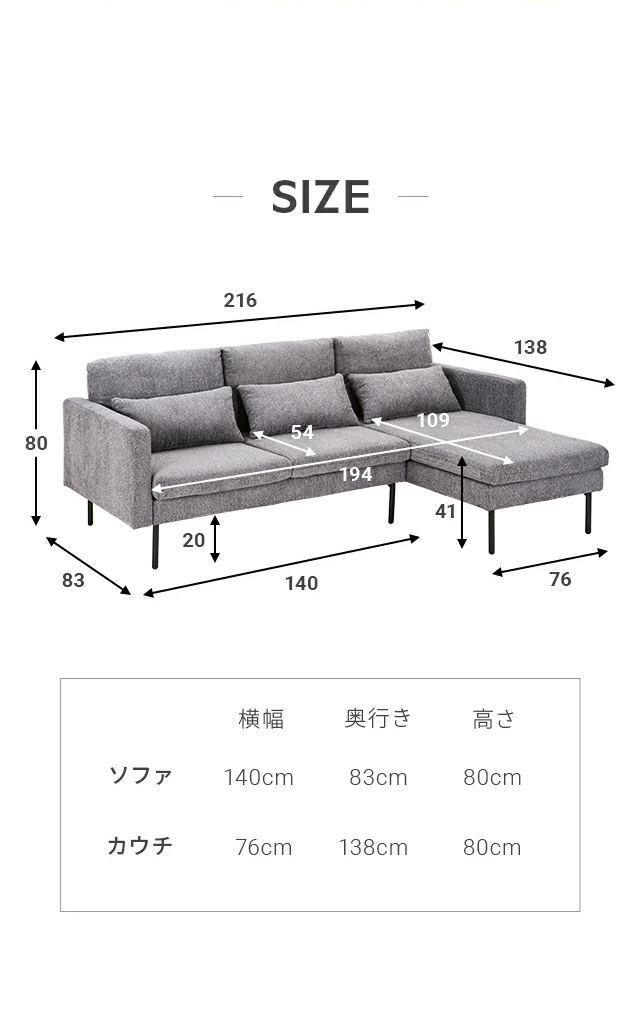 カウチ…約 幅76×奥行き138×高さ80cm
