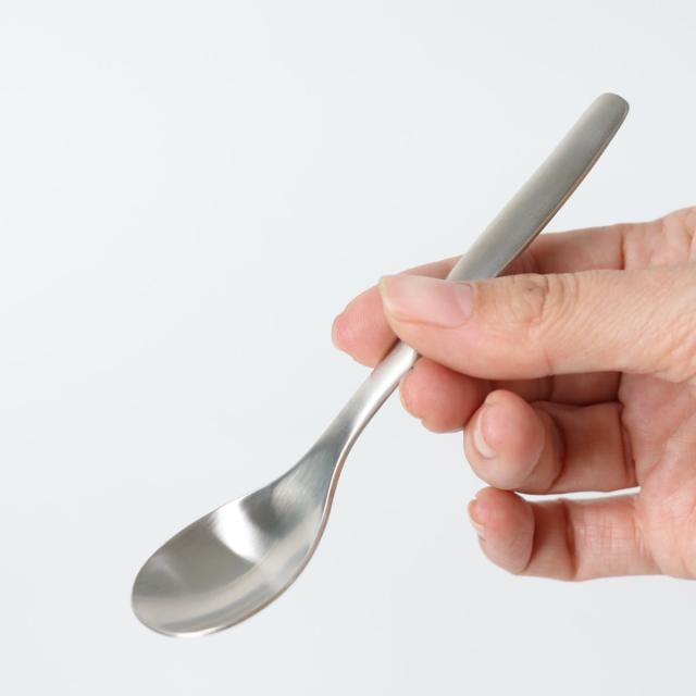 「手に取った瞬間、使った時に満ち足りた感覚になるような、感覚にうったえかけるようなもの」をコンセプトに作られたスプーンです。すくいやすさや口当たり、重量バランスにもこだわってつくられています。