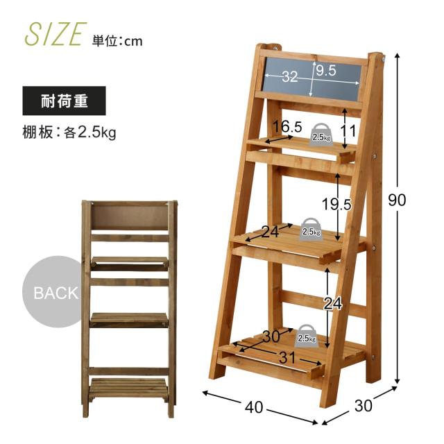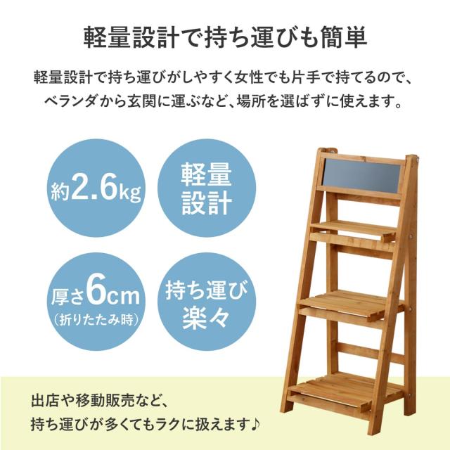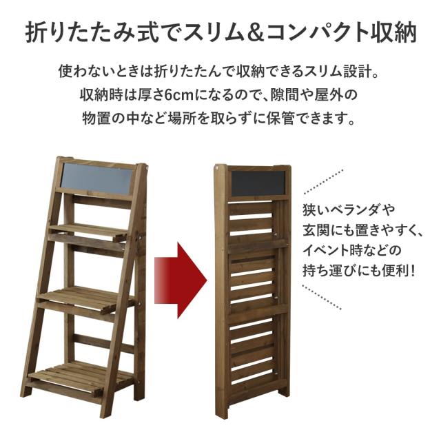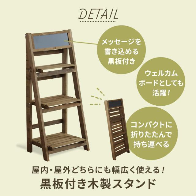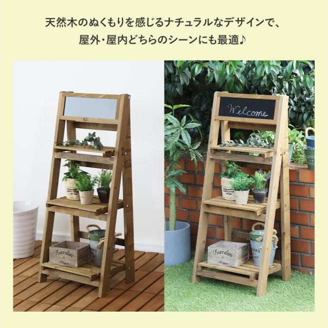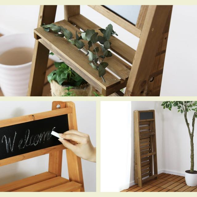 黒板 スタンド ガーデン ウェルカムボード 木製 ガーデンラック3段 庭 屋外 店頭 ベランダ 幅40 折りたたみ式 完成品 グラジオラス 新生活