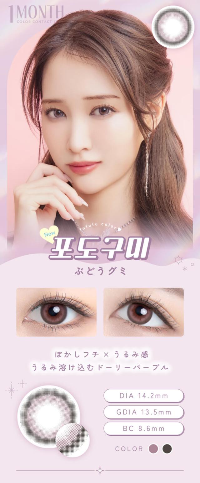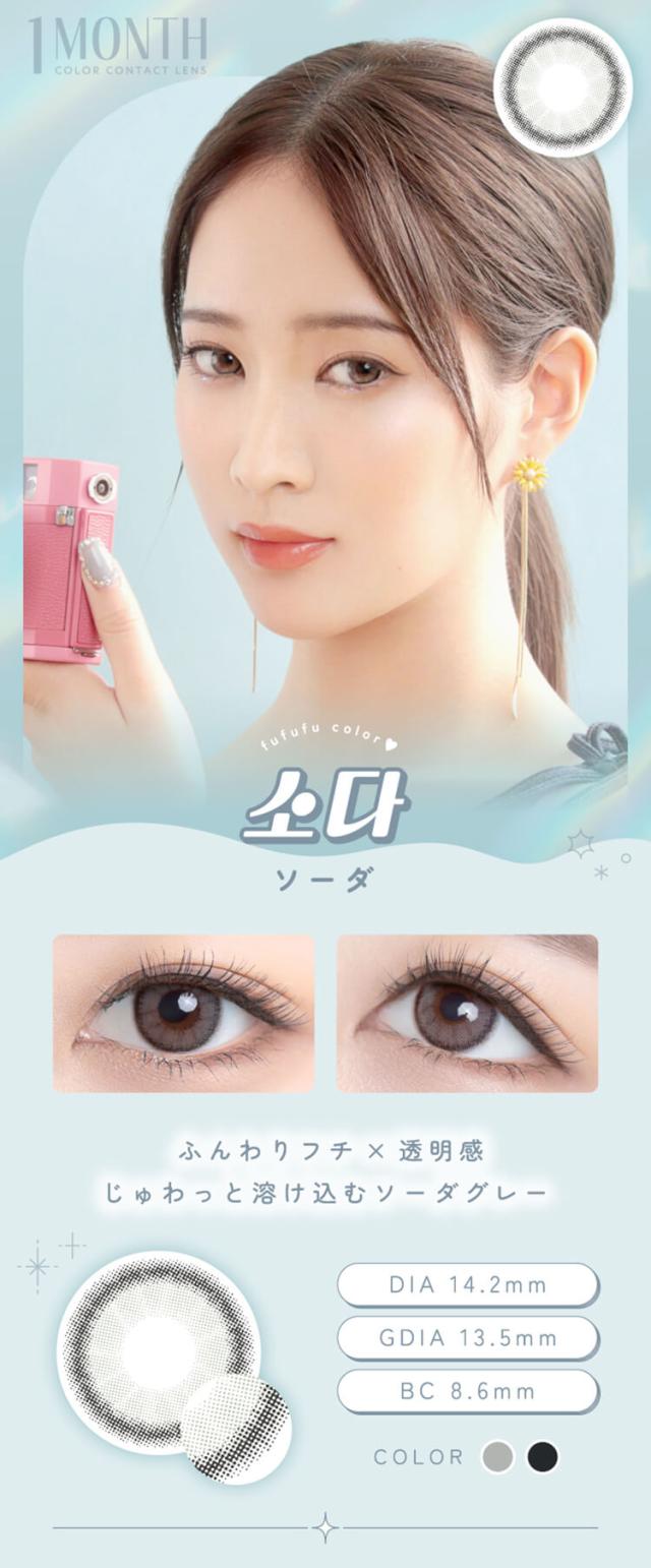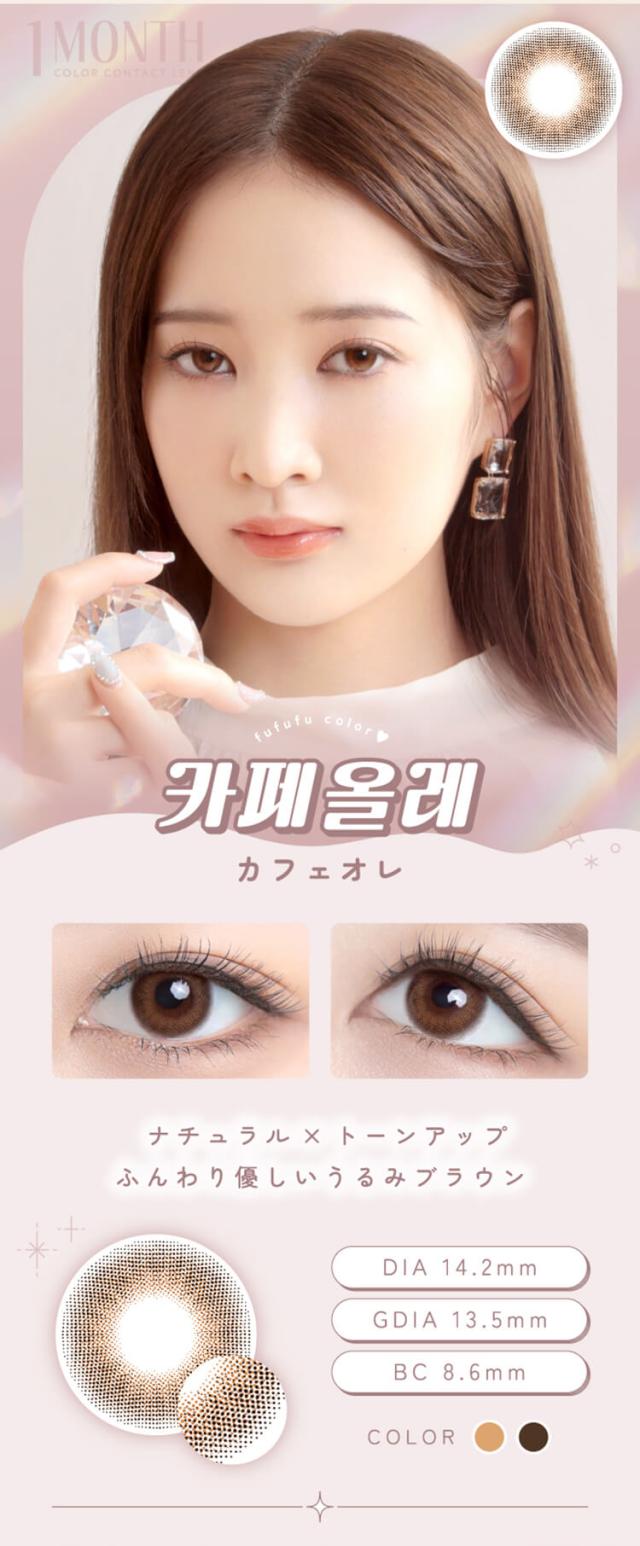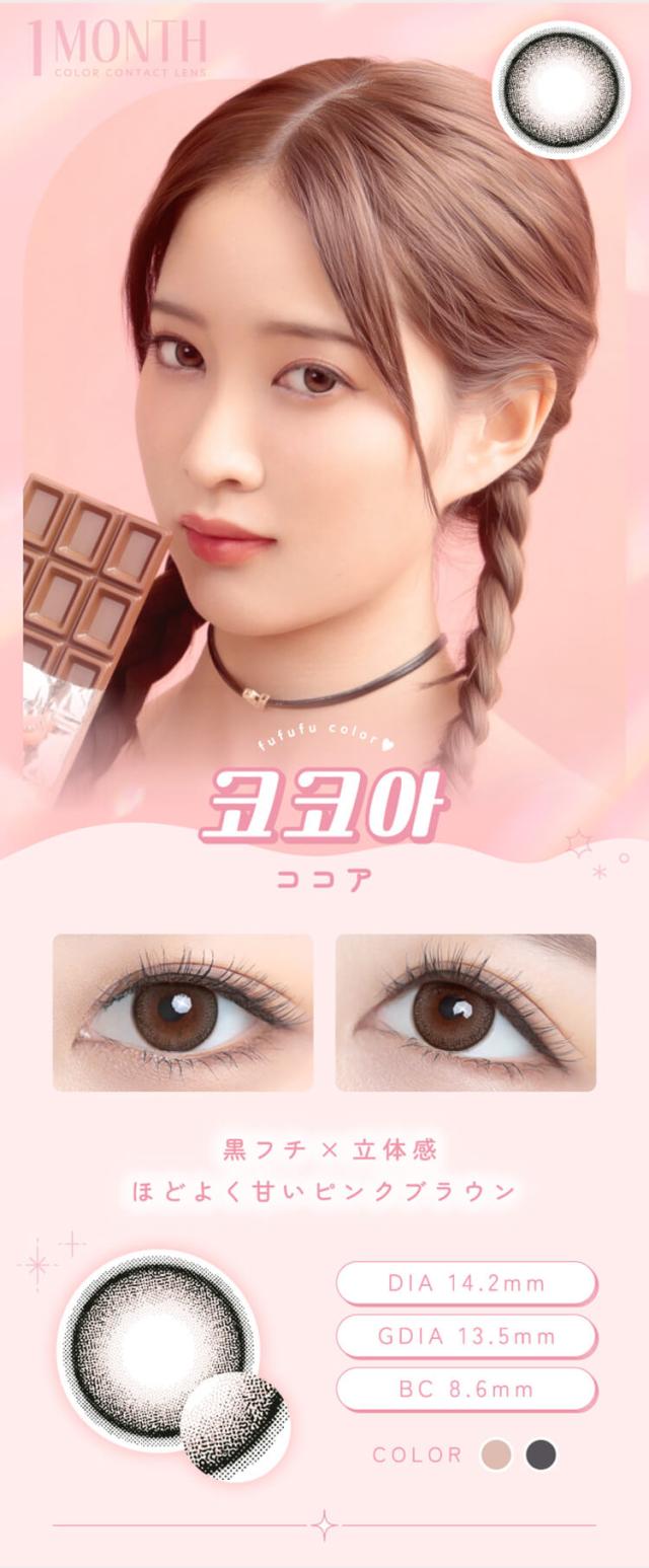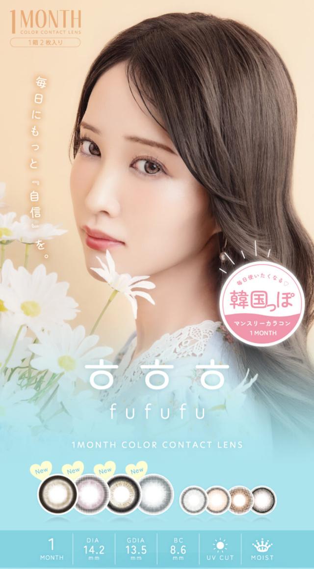 | 商品ポイント | フフフが続く毎日に。 笑顔になれる魔法のカラコン♡ 毎日にもっと『自信』を。 毎日使いたくなる韓国っぽマンスリーカラコン! 流行のリングフチレンズは瞳をくっきり魅せてくれて印象的なきれいな瞳に。 |