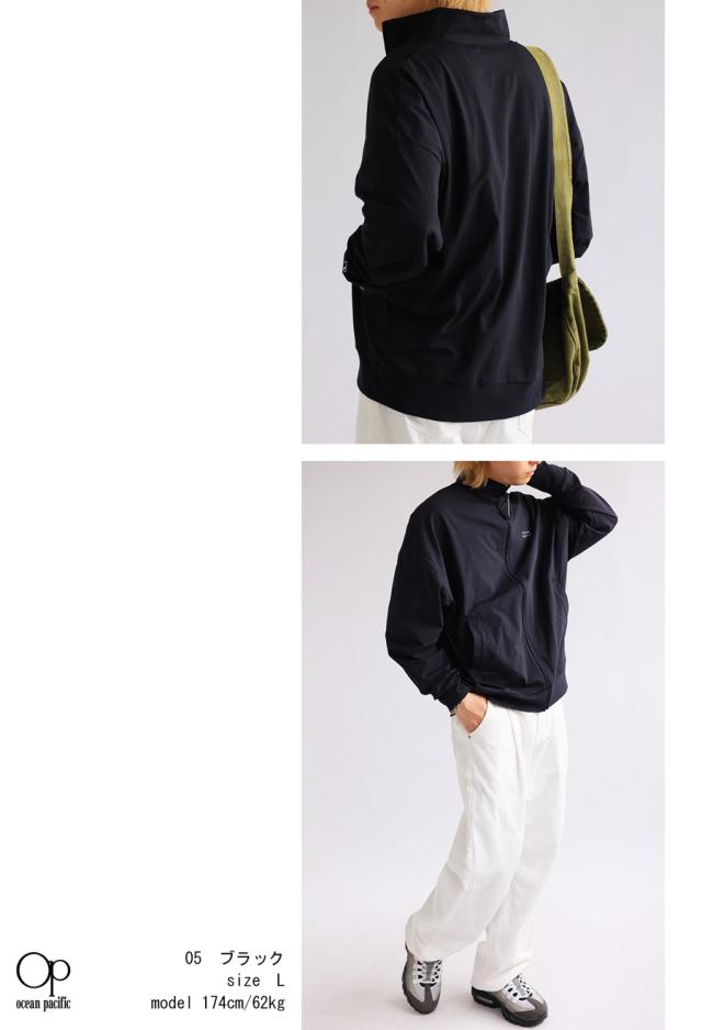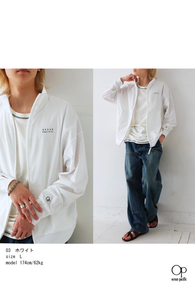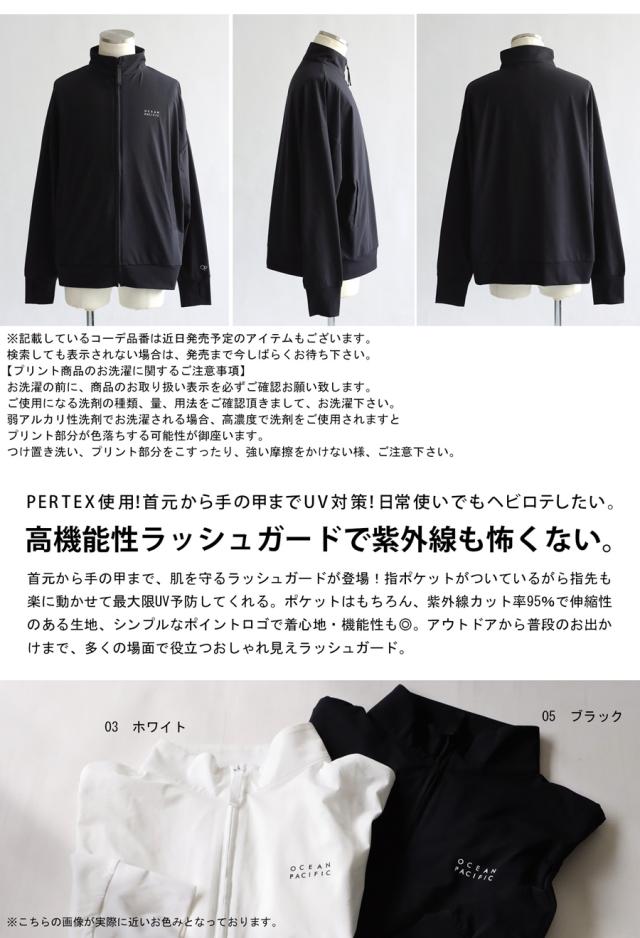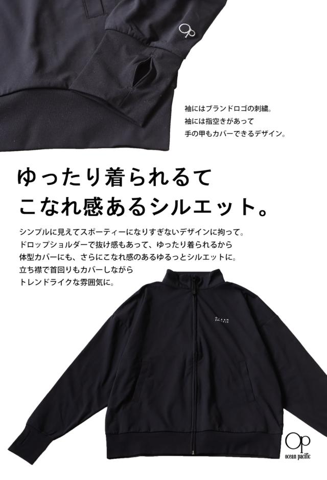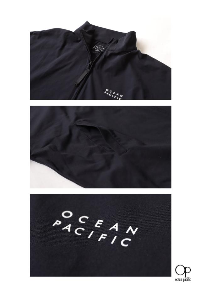 zya-00017z オーシャンパシフィック 水陸両用 UVカット 無地 長袖 スタンドネック 前開き ロゴ ワンポイント サイズ展開 紫外線対策 ストレッチ アウトドア キャンプ フェス レジャー