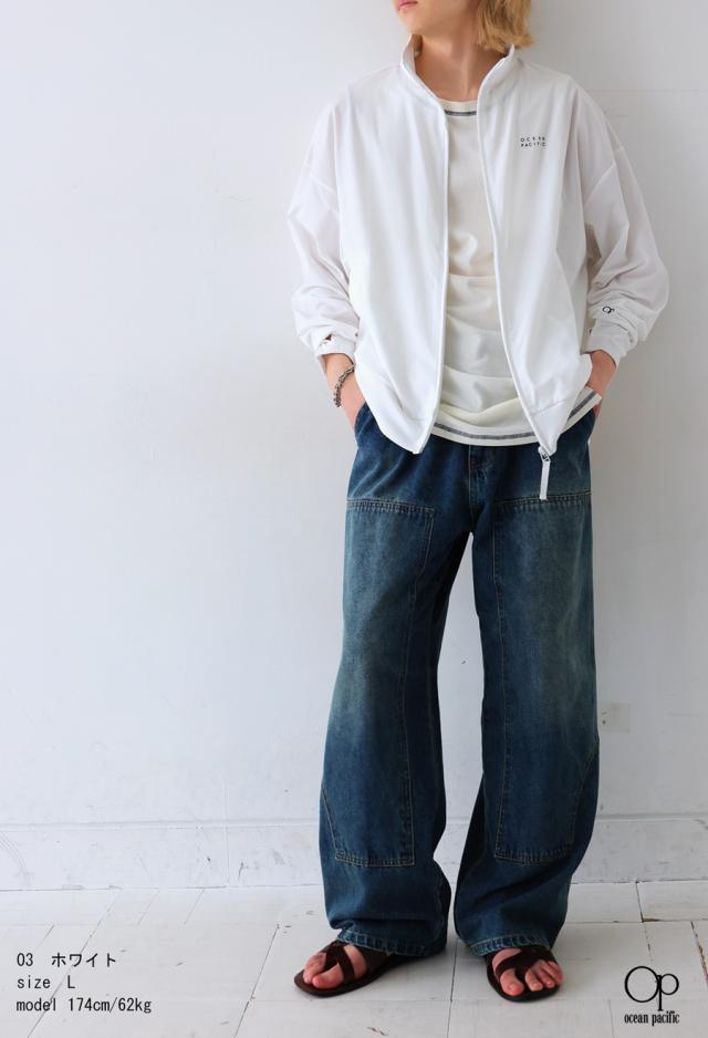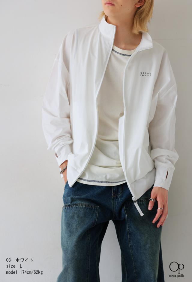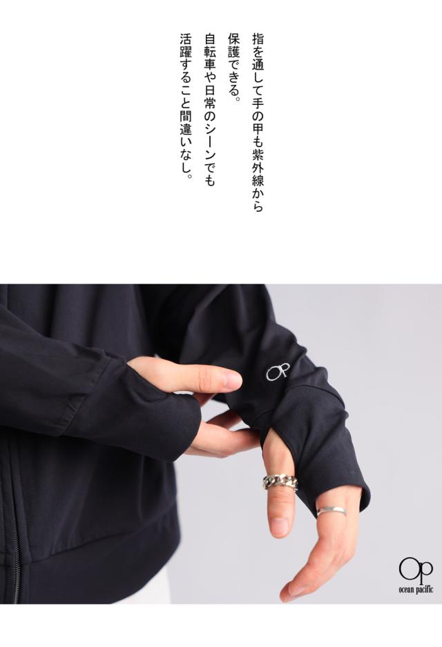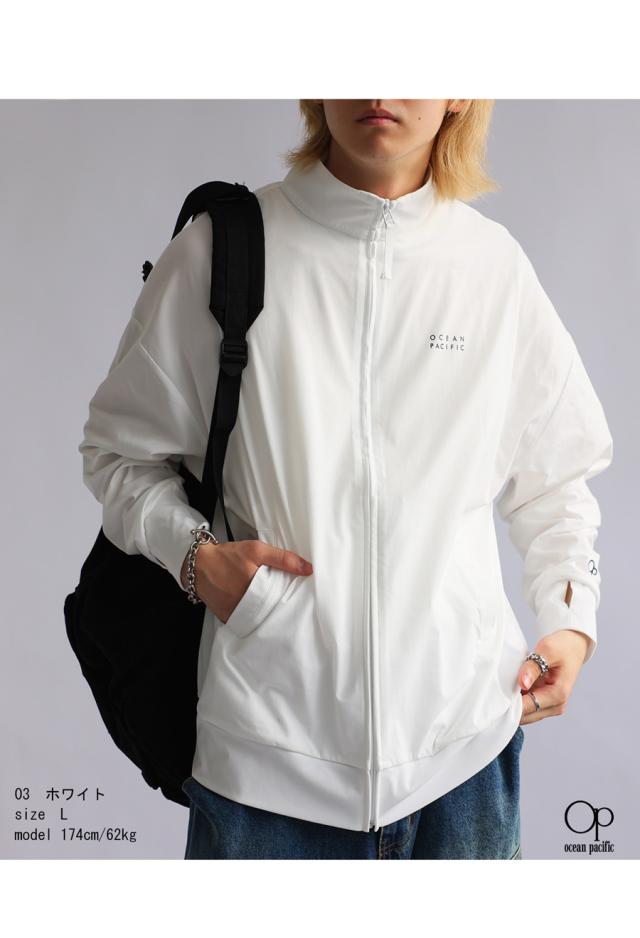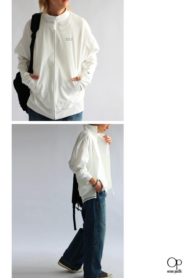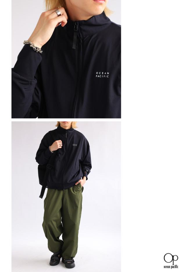 zya-00017z オーシャンパシフィック 水陸両用 UVカット 無地 長袖 スタンドネック 前開き ロゴ ワンポイント サイズ展開 紫外線対策 ストレッチ アウトドア キャンプ フェス レジャー