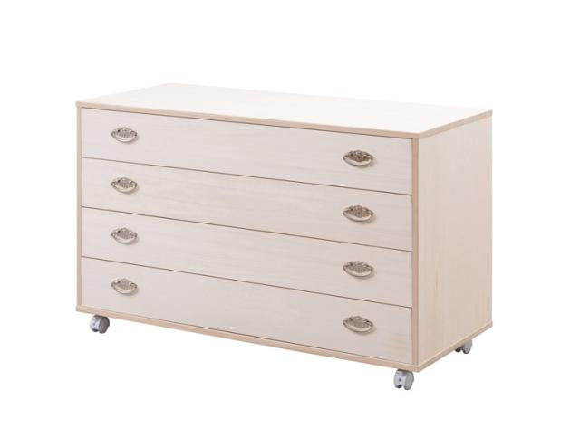 シルバー取っ手が華やかな桐クローゼットチェスト 幅99.5 奥行44 高さ61cm 4段タイプ キャスター付き 生地仕上げ 日本製 完成品(代引不可)【送料無料】