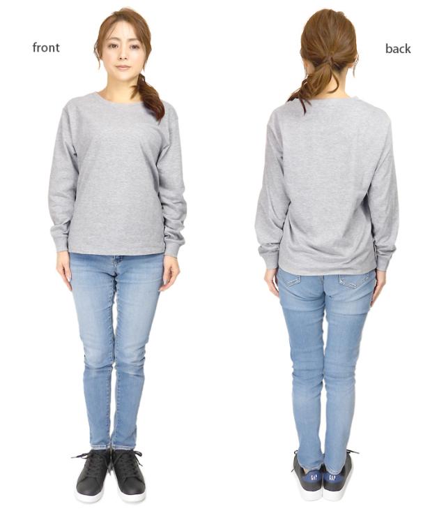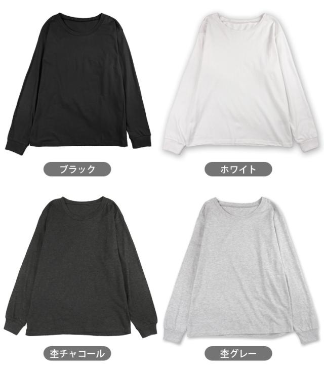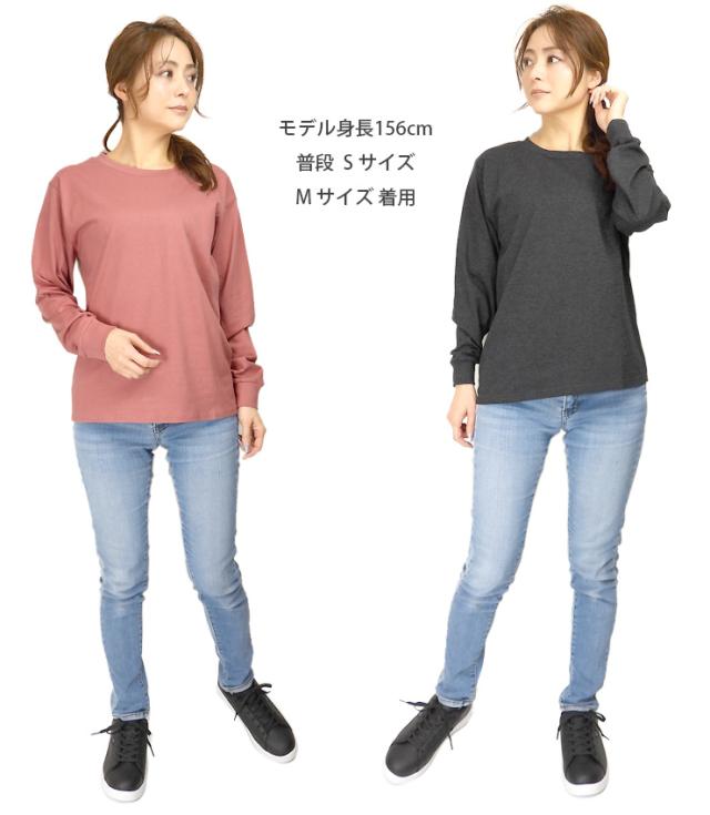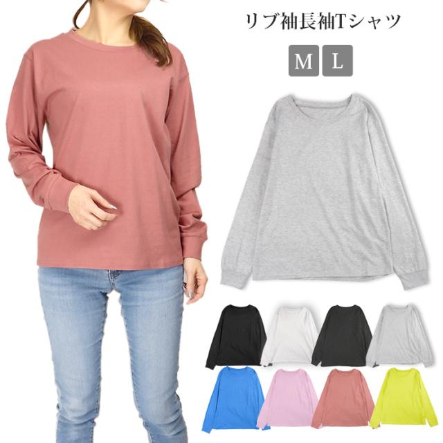 【メール便送料無料】リブ袖Tシャツ レディース 春秋 綿100% M L 長袖 82042 シンプル 無地 コットン ブラック ホワイト 杢グレー No.2528