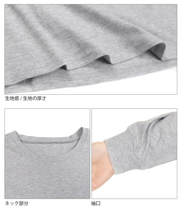 - 長袖のプレーンなタイプのTシャツでシャツやパーカーの下に着るのにちょうどよいです。色も薄目で着やすいです。