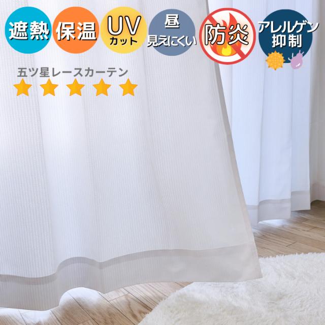 レースカーテン 防炎 日中見えにくい 遮熱 保温 UVカット 花粉 ダニ アレルゲン低減 レースカーテン 幅100cm (2枚入) 【UNV】unv