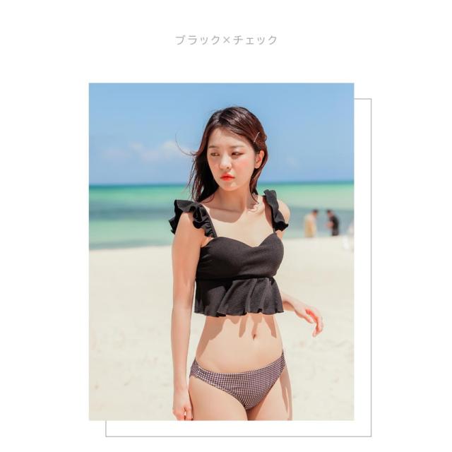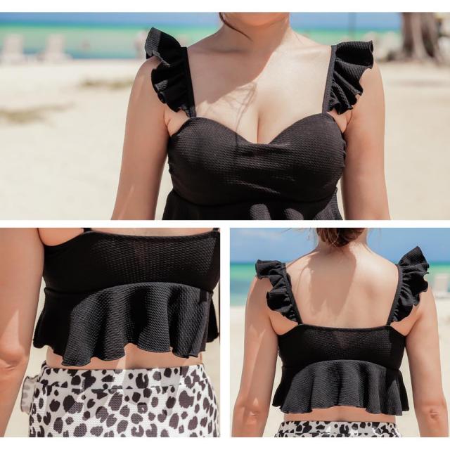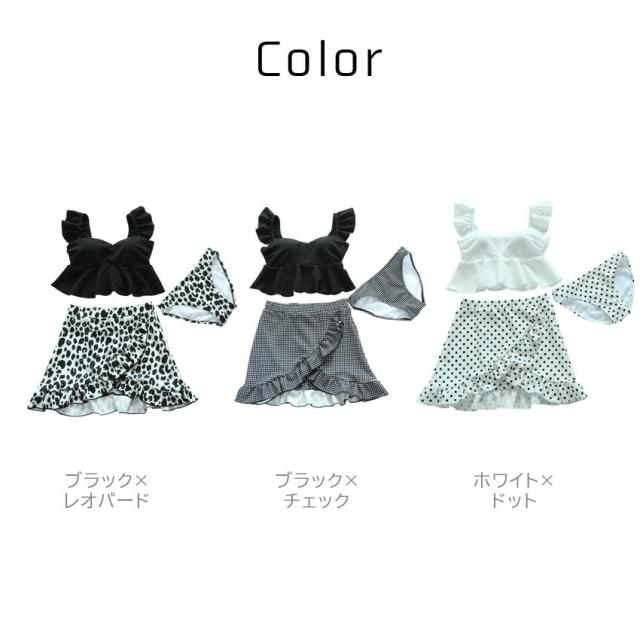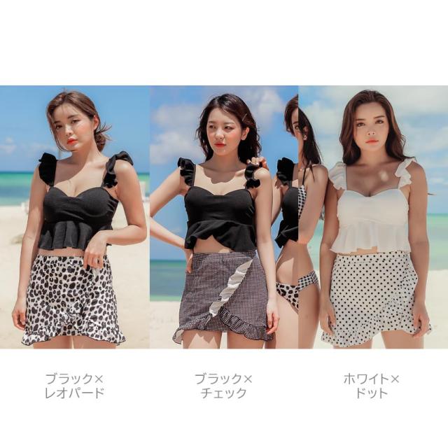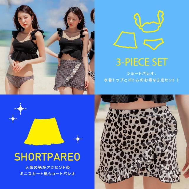 \SEA ANGEL/水着 レディース 3点セット 体型カバー セパレート トップス ボトムス ショートパレオ 上下 パッド付き UPF50+ UVカット フリル トレンド ママ水着 おしゃれ かわいい 10代 20代 30代 S M L