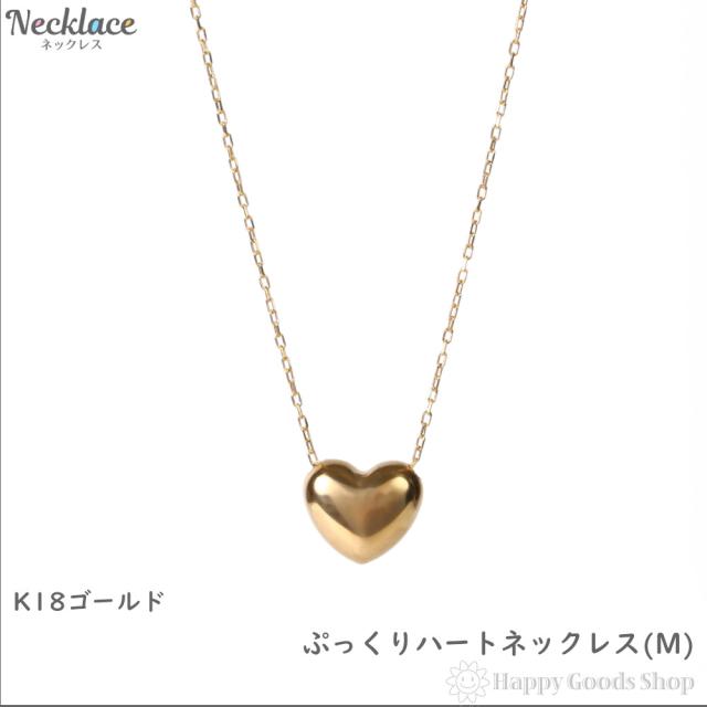 18金 ネックレス ぷっくり ハート (M) ゴールド レディース アクセサリー ネックレスチェーン