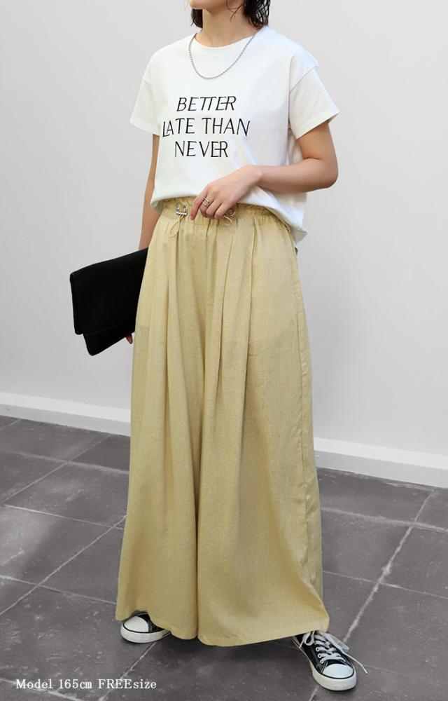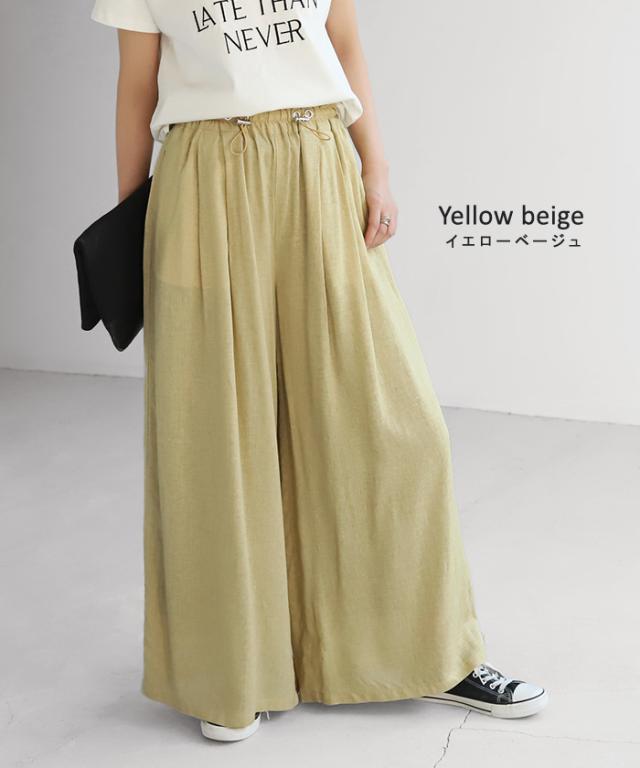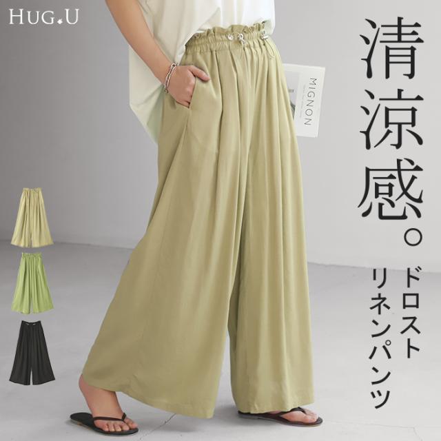 パンツ リネンパンツ ワイドパンツ レディース ワイド ドロスト リネン 麻パンツ 涼しい ゆったり ボトムス ミリタリー ドロスト ロング ズボン ボトム ゴム フレアパンツ ウエストゴム 大きいサイズ 体型カバー ベージュ 黒 きれいめ 麻 春 夏 HUG.U 秋新作
