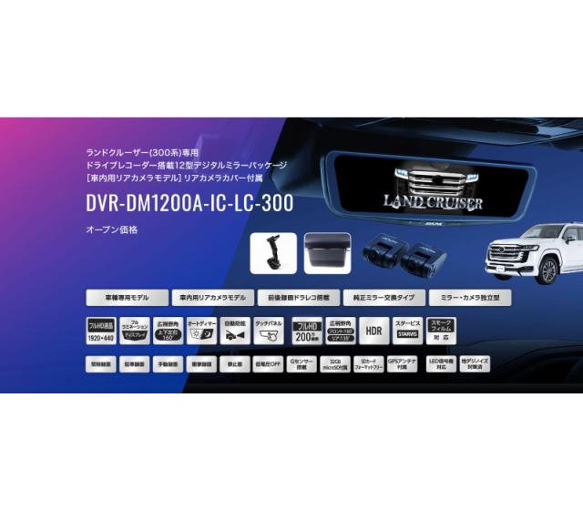 DVR-DM1200A-IC-LC-300 アルパイン ドライブレコーダー搭載12型デジタルミラー 車内用リアカメラモデル ランドクルーザー(300系)専用 リアカメラカバー付属