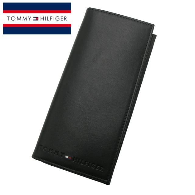 送料無料 トミーヒルフィガー 長財布 31TL19X006-001Black 型押しロゴ レザー メンズ