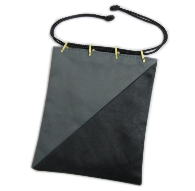 信玄袋 平巾着 バッグ メンズ 男性 濃グレー黒 2色切り替え 合皮 無地 浴衣 甚平 着物 男物 紳士用 ゆかた きもの 和装 フェイクレザー