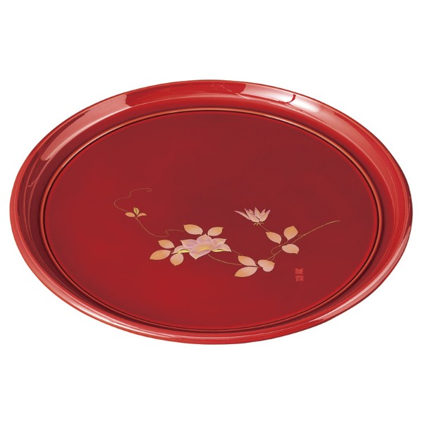 紀州塗り(紀州漆器)は室町時代の始まりであると伝えられています。その塗物技法は優れた漆工たちに引き継がれて、昭和53年に通産省より伝統的工芸品の指定を受けております。美しく、丈夫で使いやすい『ぬりもの』としてご愛用を頂いております。どうか麗しいぬりもののよさを充分味わって下さい。 丸盆(約φ303×19mm)×1※材質 ユリア樹脂