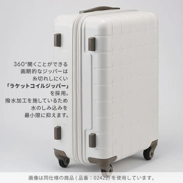 | ブランド |プロテカ / PROTECA シリーズ |360 G4 品番 |02423 形状 |スーツケース Lサイズ |キャリーケース 外寸 |W480×H650×D270[mm] 重量 |約 4.0kg 容量 |約 71L 滞在目安 |5泊〜7泊(1週間) 主素材 |ポリカーボネート・ABS混合樹脂 生産国 |日本 / Made in Japan ワランティ |10年間の製品保証 |※最初の3年間は完全保証プレミアムケア 仕様 |4輪 |キャスターストッパー |360度オープンシステム |TSダイヤルファスナーロック |サイレントキャスター® |ベアロンホイール® |機内預け入れサイズ ATTENTION ●荷物をお預けの際は、キャスターストッパーをOFFにしてください。 ●ストッパーはONの状態でも、強い力によってラゲージが移動する場合があります。 ●このスーツケースのTSAロックはダイヤルコンビネーションロックです。鍵穴はTSA職員が緊急の際に解錠して検査を行うためのものであり、差し込み式のキーは付属しておりません。 ●安全のため、ご使用前に付属のお取り扱いマニュアルを必ずご確認下さい。 |