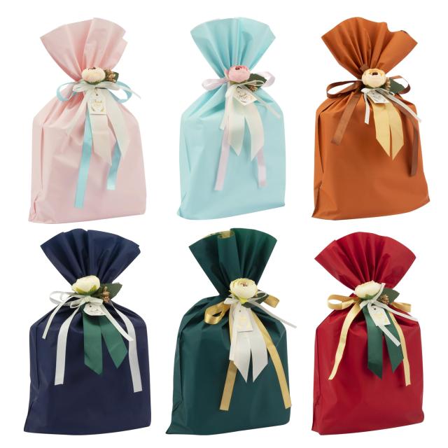 ◆商品名:[TEMLUM] ラッピング袋 ギフトバッグ 包む リボン付き プレゼント用 手作り造花 5種類 ギフト 包装 シンプル 無地 厚手 おしゃれ 可愛い