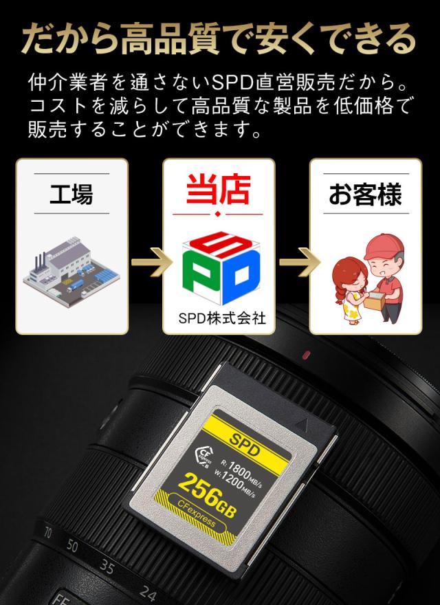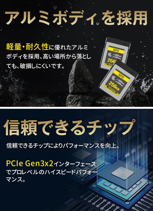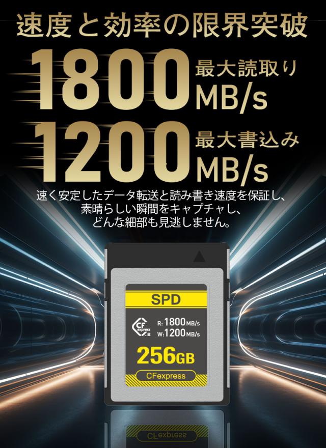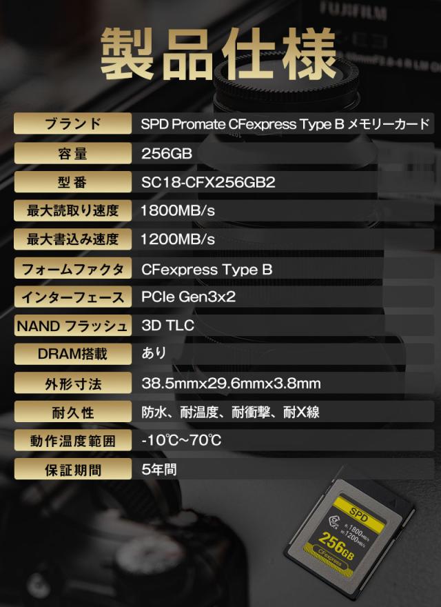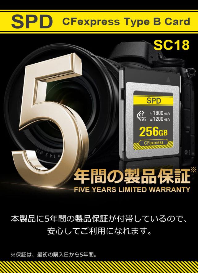 SPD CFexpress Type B メモリーカード 256GB R:1800MB/s W:1200MB/s 8K 4K ビデオ SC18-CFX256GB2 5年保証 ネコポス送料無料