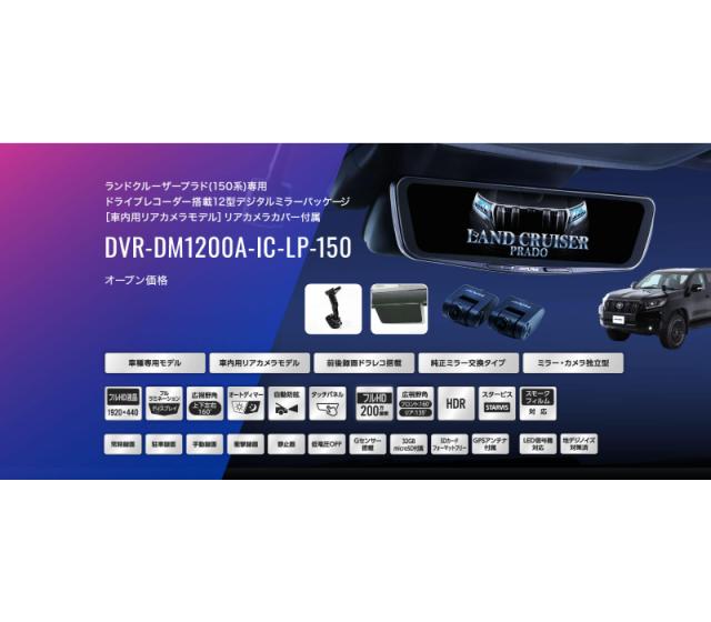 DVR-DM1200A-IC-LP-150 アルパイン ドライブレコーダー搭載12型デジタルミラー 車内用リアカメラモデル ランドクルーザープラド(150系)専用 リアカメラカバー付属