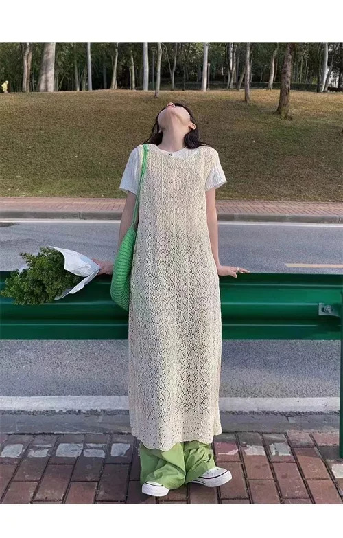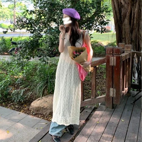 クロシェレース ベルスリーブ ロングワンピース かぎ針編み.ヴィンテージ クロシェレース 春 夏 秋