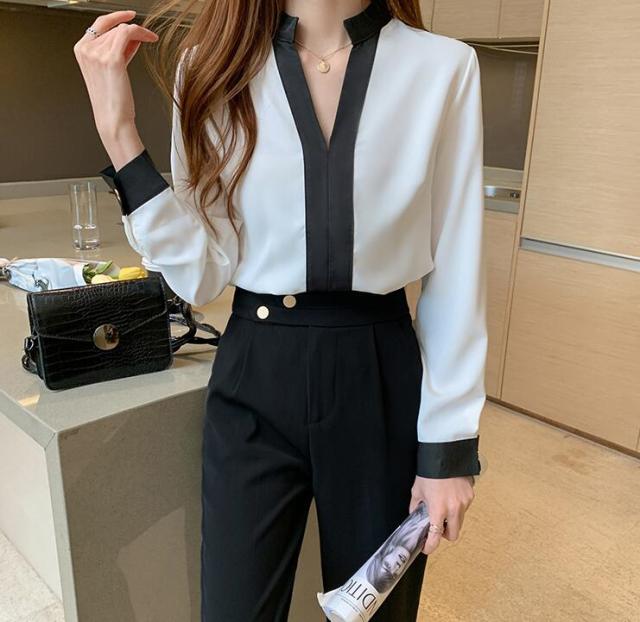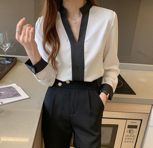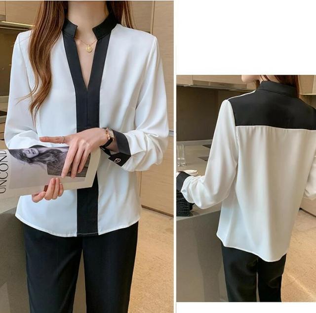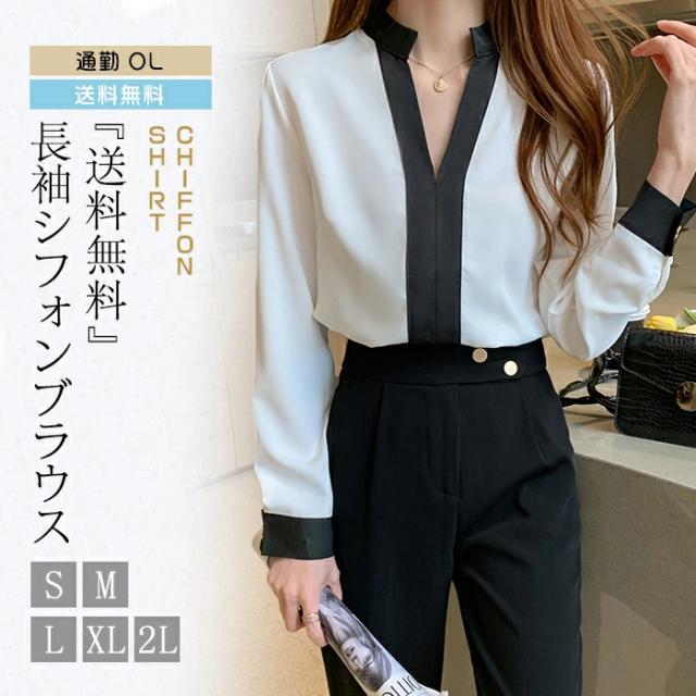 【即納】シフォンブラウス レディース シフォン フォーマル フォーマル 長袖シフォンブラウス トップス シャツ ビジネス ブラウス 作業着 制服 事務服 Vネック オフィススタイル 通勤 OL