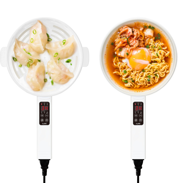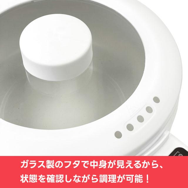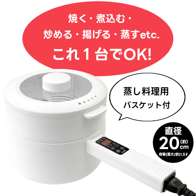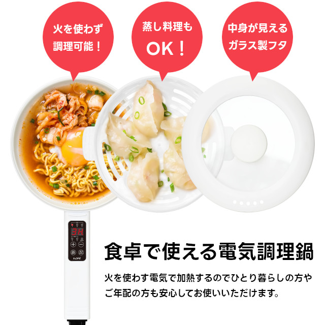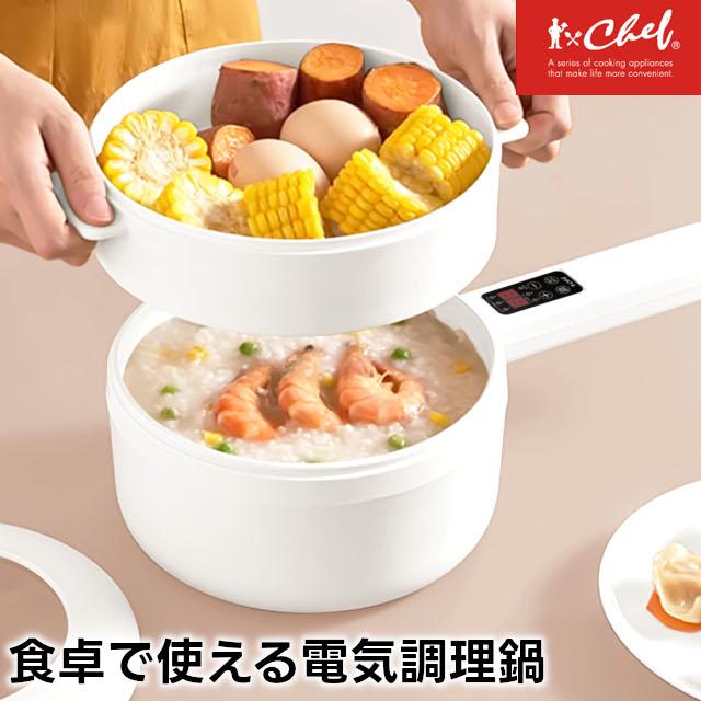 【期間限定特別価格】CHEF 食卓で使える電気調理鍋 20cm EP-70194【トレードワン 蒸し器 万能調理器 電気調理鍋 調理鍋 電気鍋 片手鍋 ひとり暮らし 20センチ ガラス蓋付き 電気調理器 セラミックコーティング タイマー付き】