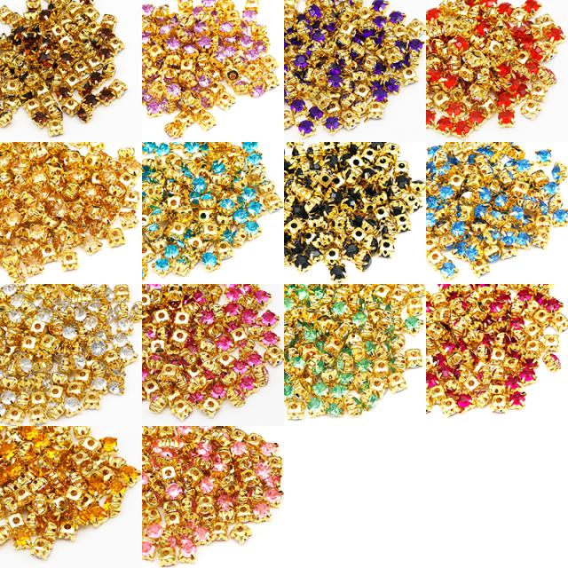 ビジュー 台座ストーン 6ミリ 約100粒入り カラフルビジュー台座付ピアスイヤリングアクセサリーレジン
