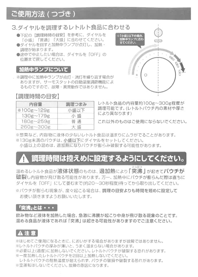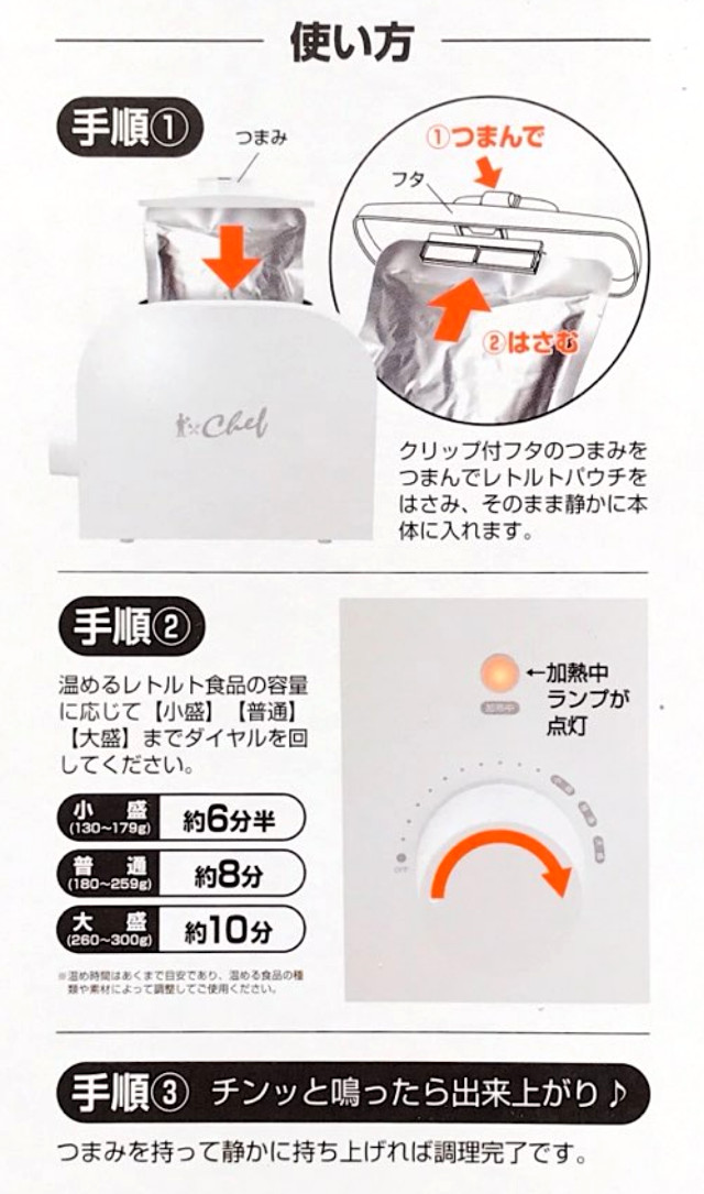 とにかく簡単!レトルトパウチ食品を入れてダイヤルを回すだけ!
