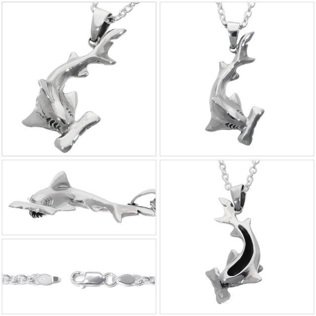 立体 サメ ハンマーヘッドシャーク シルバー ネックレス ペンダント ペンダントトップ ペンダントチャーム 鮫 シュモクザメ マリン 海 シルバー925