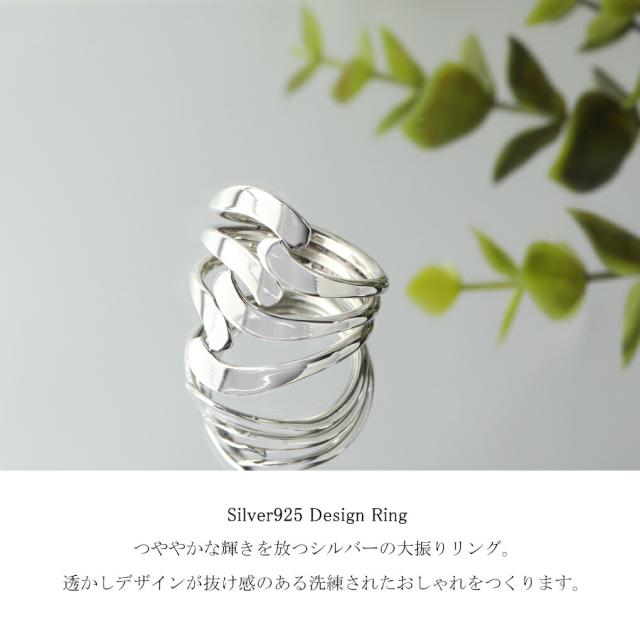 透かし ボリューム リング 指輪 12〜26号 シルバー 925 鏡面 白仕上げ ニュアンス 幅広 大きめ 大振り シンプル さりげない きらきら 大人 上品
