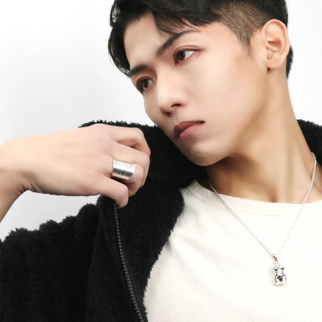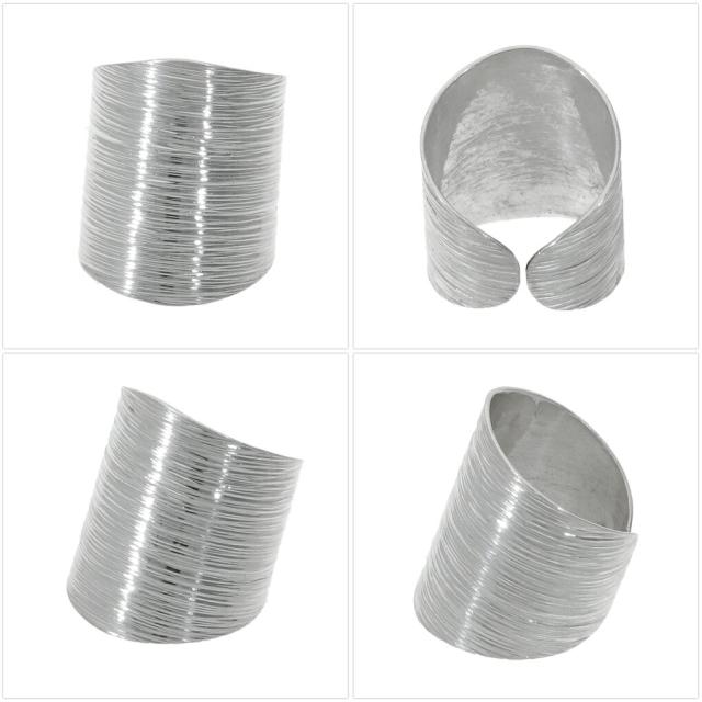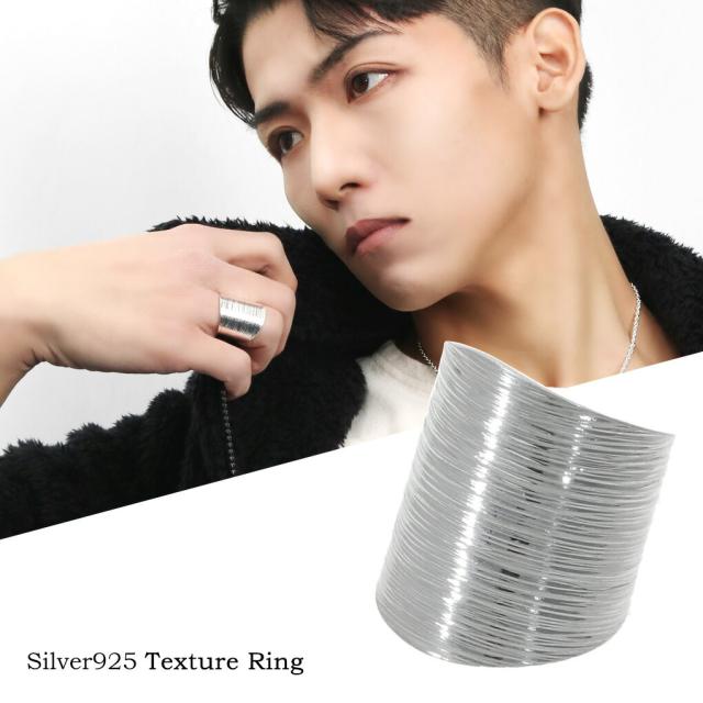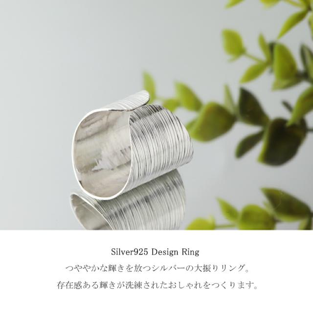 テクスチャ ボリューム リング 指輪 13〜25号 フリーサイズ オープンリング シルバー 925 鏡面 白仕上げ シンプル 大人 上品 きれいめ シルバーリング