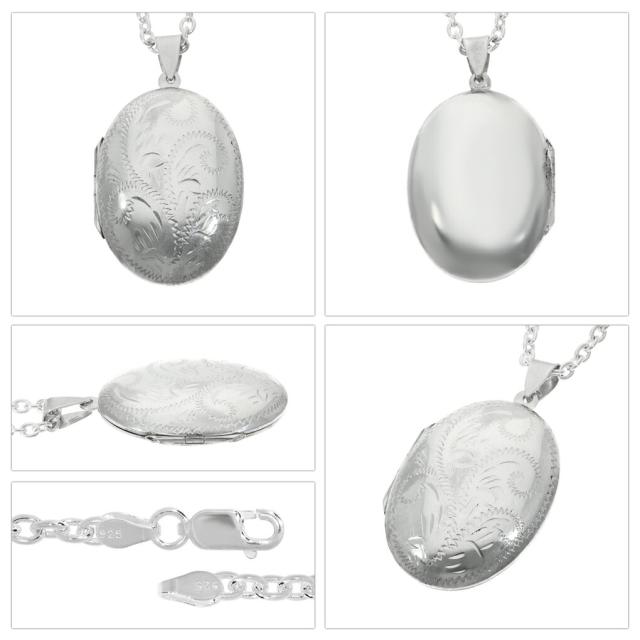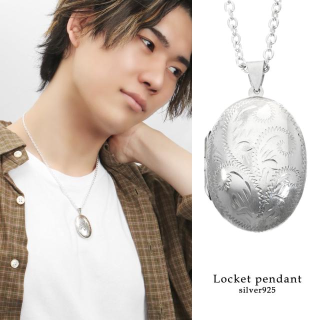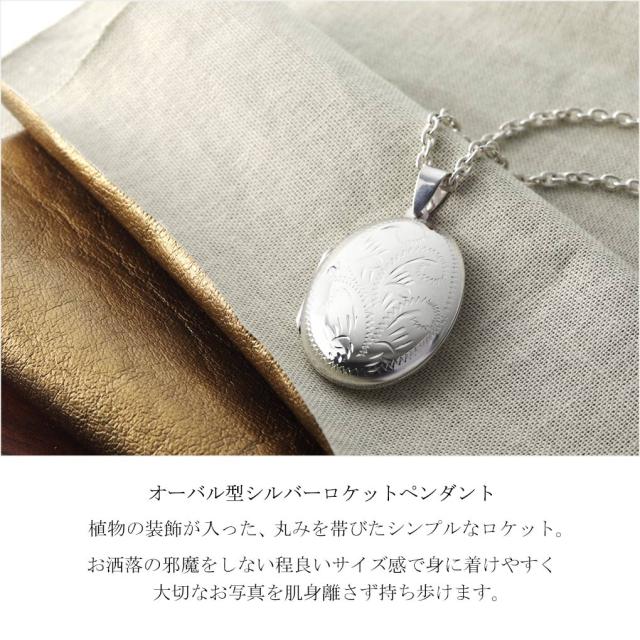 オーバル 植物 装飾 総柄 ロケット ペンダントトップ (チェーンなし) ネックレストップ ペンダントチャーム シルバー シルバー925 楕円 写真入れ 写真 持ち歩き