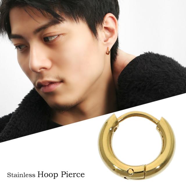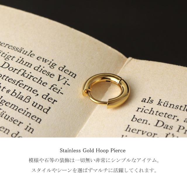 ゴールド フープ ピアス 1P 片耳用 ステンレス アレルギーフリー ニッケルフリー リングピアス プレーン 金 金色 定番 シンプル さりげない
