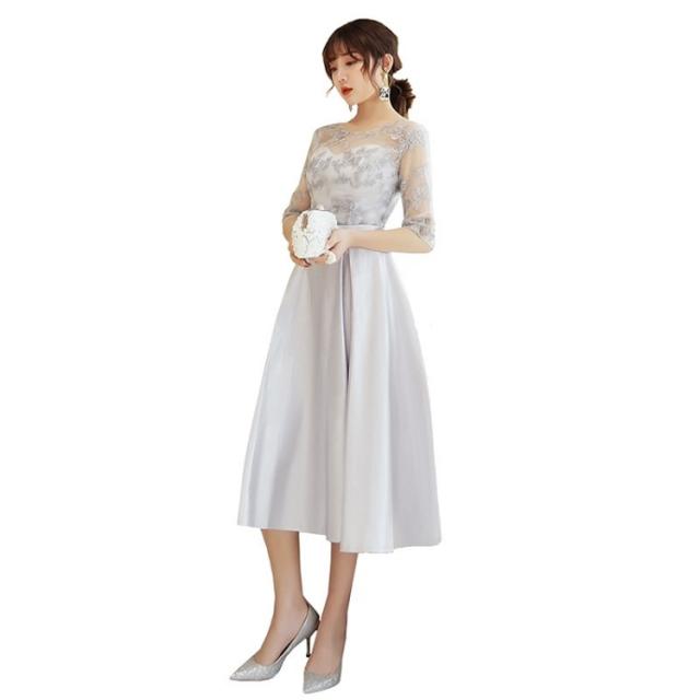 ドレス パーティードレス 結婚式 ワンピース ドレス 袖あり 大きいサイズ ワンピースフォーマルドレス フォーマル お呼ばれ 服 親族 大きいサイズ 大人 上品 20代 30代 40代 50代 卒業式 二次会 披露宴 お呼ばれ 上品 膝下 体型カバー