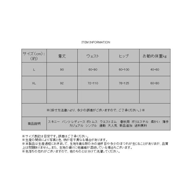 キーワード:スキニー パンツ レディース ボトムス ウエストゴム 春秋用 ポリエステル 柔かい カジュアル シンプル 通勤 大人気 新品追加 送料無料 楽ちん らくちん 楽ちん シンプル カジュアル 春秋