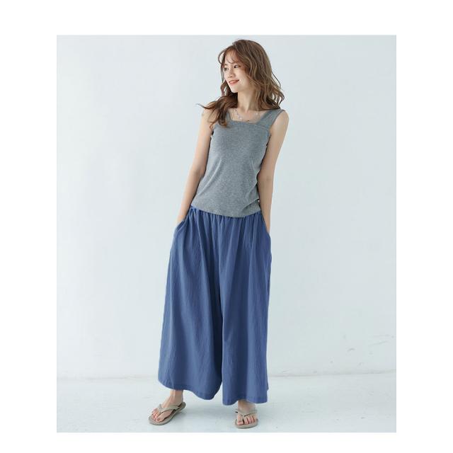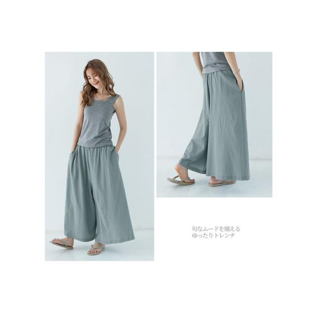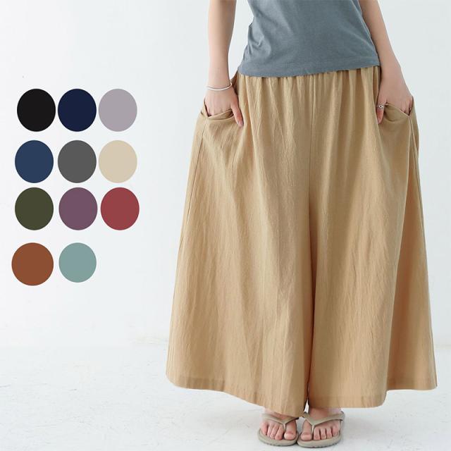 ガウチョパンツ レディース ボトムス リネン風 ウエストゴム ゆったり 春秋用 夏用 ロング丈 綿麻風 送料無料