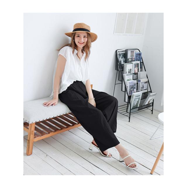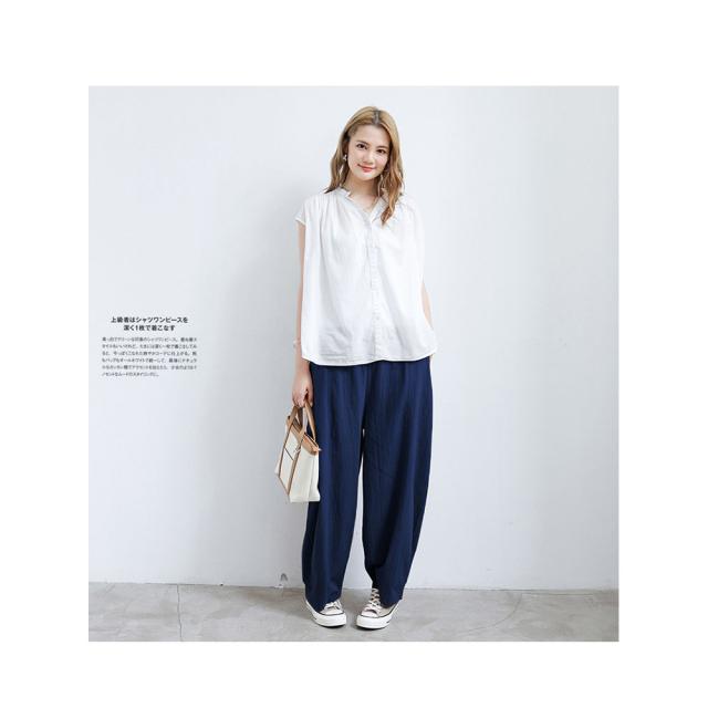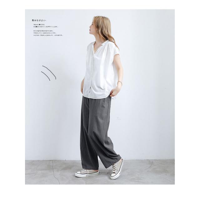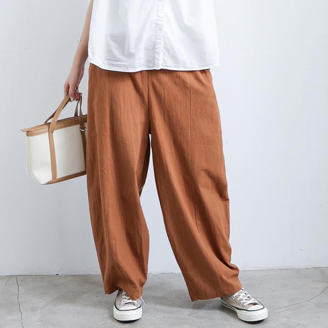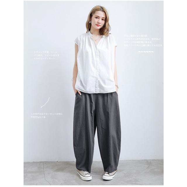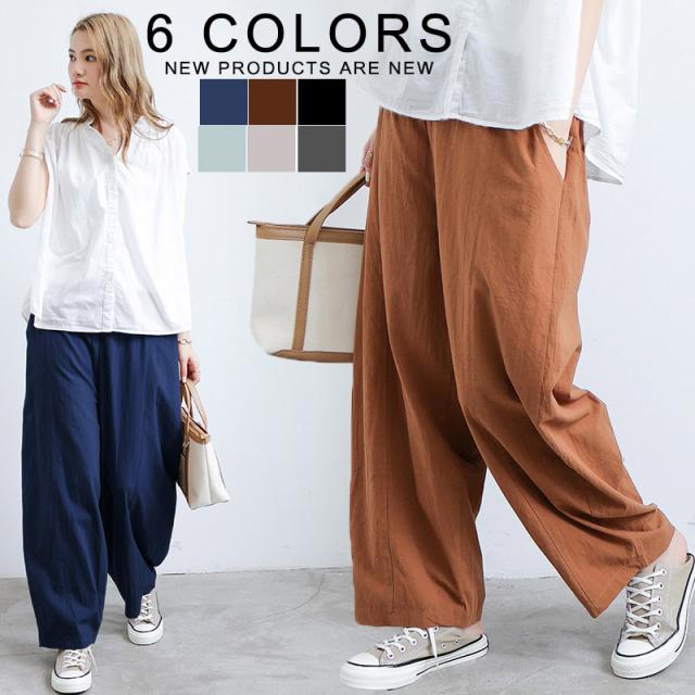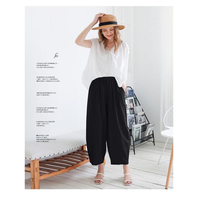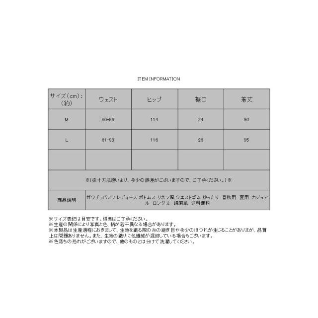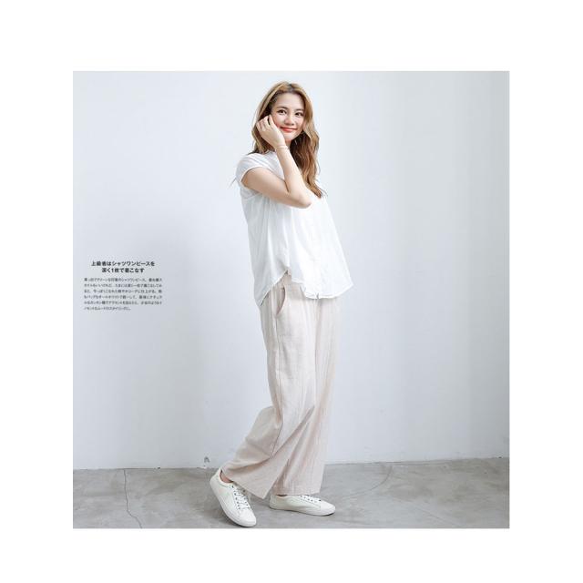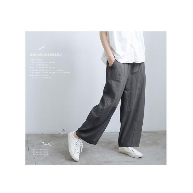 ガウチョパンツ レディース ボトムス リネン風 ウエストゴム ゆったり 春秋用 夏用 カジュアル ロング丈 綿麻風 送料無料