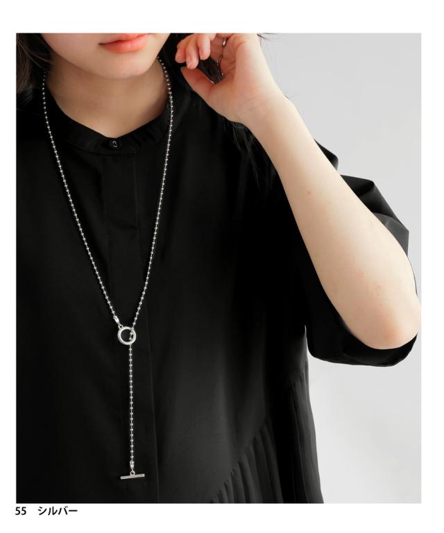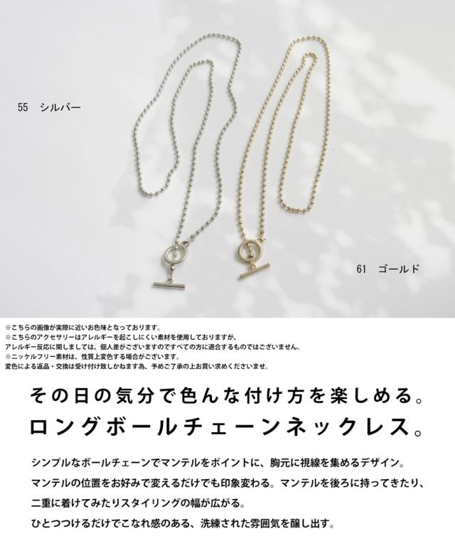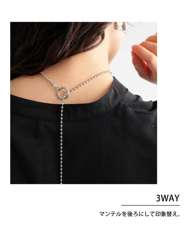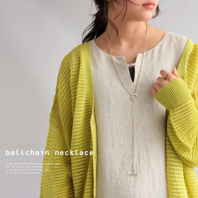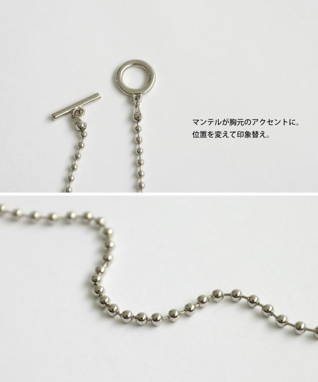 マンテルがポイントになる、胸元に視線集めるボールチェーンネックレス。