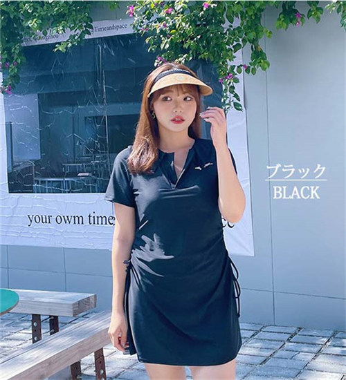 水着 無地 ワンピース 水着 大きいサイズ 半袖 水泳 ボトム付 きれいに ママ ブラック ピンク 2l 3l 4l 5l 6l 7l 体型カバー パッド付き 露出控えめ 伸縮性 日焼け対策