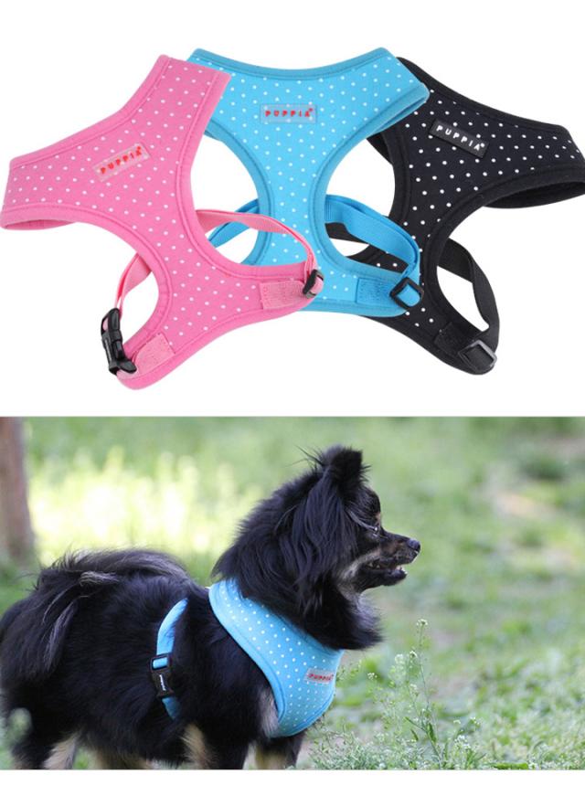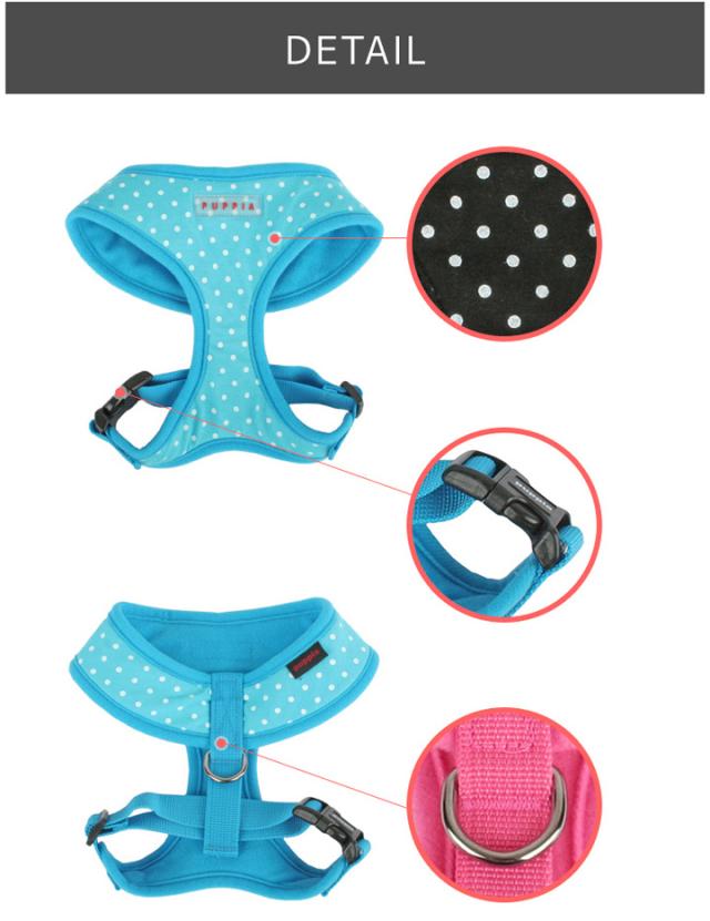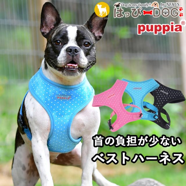 ハーネス ドット柄 犬 首の負担が少ない 小型犬 中型犬 子犬 パピア PUPPIA 可愛い ハーネス犬用 犬のハーネス 柔らかい ベストハーネス パピー 超小型犬 極小 簡単装着 抜けない 脱げない 胴輪 シニア犬