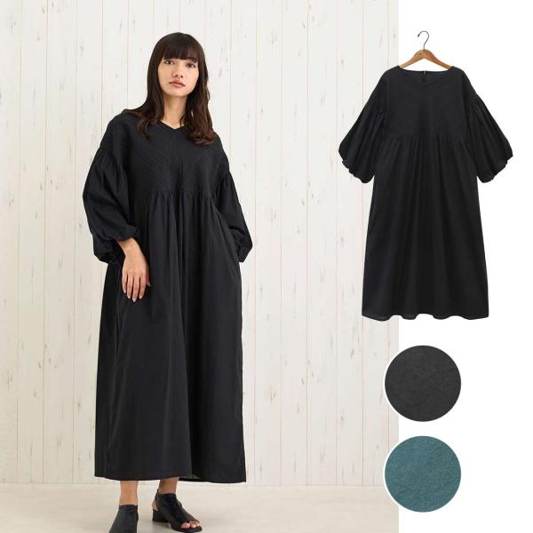梅春 ブラック ぽわん袖 大人 コットン ワンピ かわいい リゾート