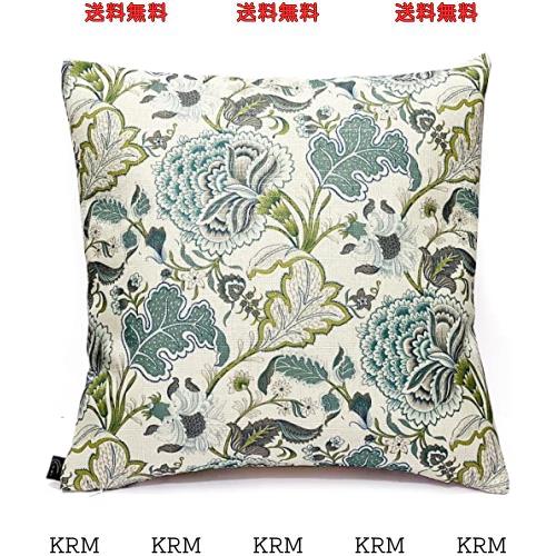 Kuai クッションカバー 60×60cm レトロフラワー ヴィンテージ風 モダン 花柄 アジアン 北欧 インテリア ポリエステル (ホワイトブルー)