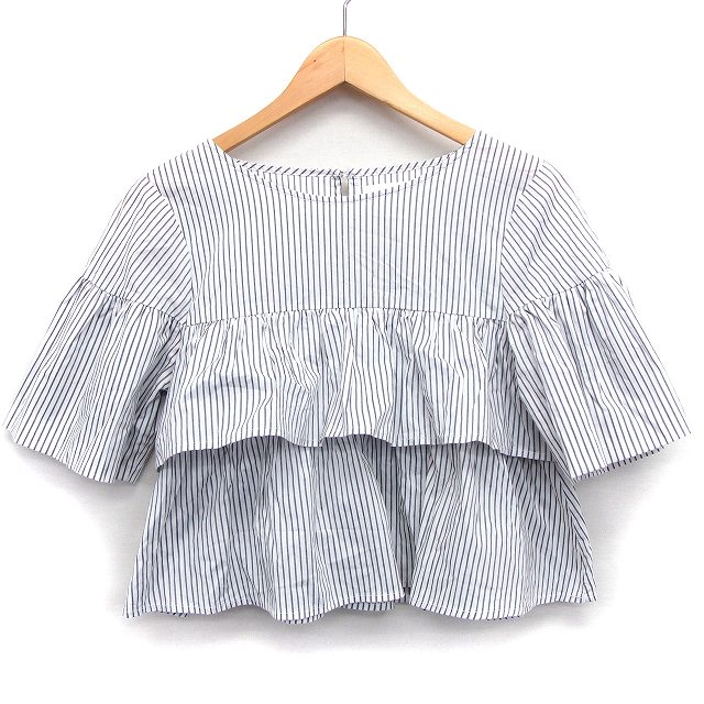 【中古】フーズフーチコ who's who Chico カットソー ブラウス ショート丈 ストライプ 柄 フリル ワイド袖 五分袖