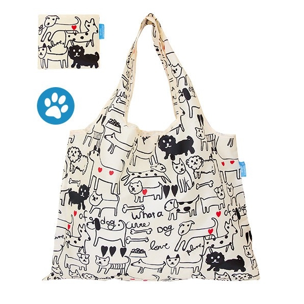 エコバッグ ショッピングバッグ モノトーンドッグ 折りたたみ マチ広 大容量 肩掛け おしゃれ かわいい レディース メール便 送料無料