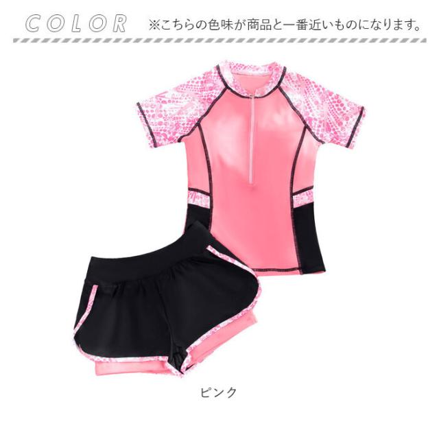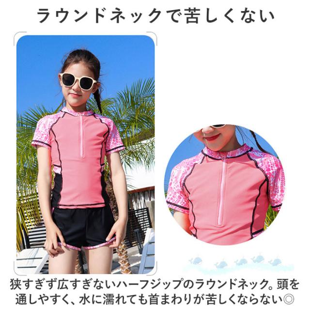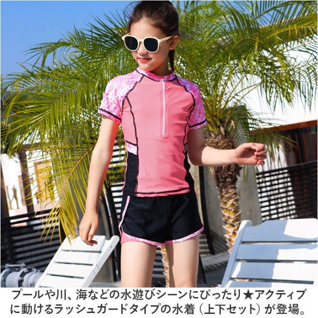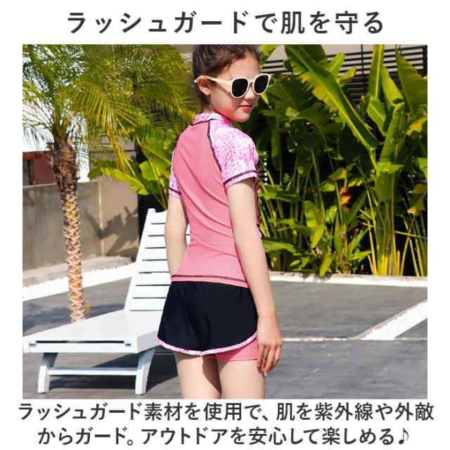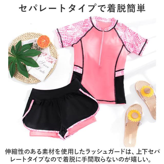 ジュニア 水着 女の子 セパレート 通販 半袖 パンツ ハーフパンツ ラッシュガード 上下 トップス パッド付 紫外線対策 日焼け対策 可愛い かわいい スイミング プール 海 川遊び