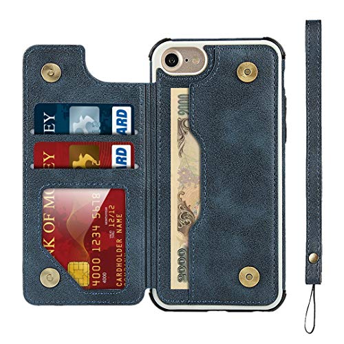 Pelanty i Phone SE 第3世代2022 ケース i Phone SE 第2世代2020 ケース i Phone7 ケース i Phone8 ケース 縄掛け アイフォン6/ i Phone 6s ケース 4.7インチ 通用 背面 手帳型 PUレザーケース IC カード収納 スタンド機能 ボタン磁気 多機能 携帯カバー 軽量 耐衝撃 滑り防止 ストラップ スマホケース 全面保護 5色選択ブルー