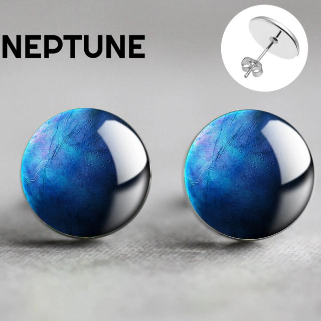 宇宙にあるネプチューン(海王星)をモチーフにしたカボションをスタッドピアスにセットしたオシャレなファッションピアス。