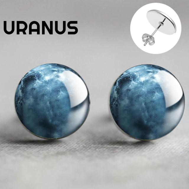 14mm カボションピアス (天体:URANUS) 1ペア ウラノス 天王星 宇宙 プラネット ギャラクシー 天体観測 プラネタリウム デート 人気 丸型 丸い カボーション 20G 20ゲージ 20g ファッションピアス スタッドピアス キャッチピアス メンズ レディース プレゼント