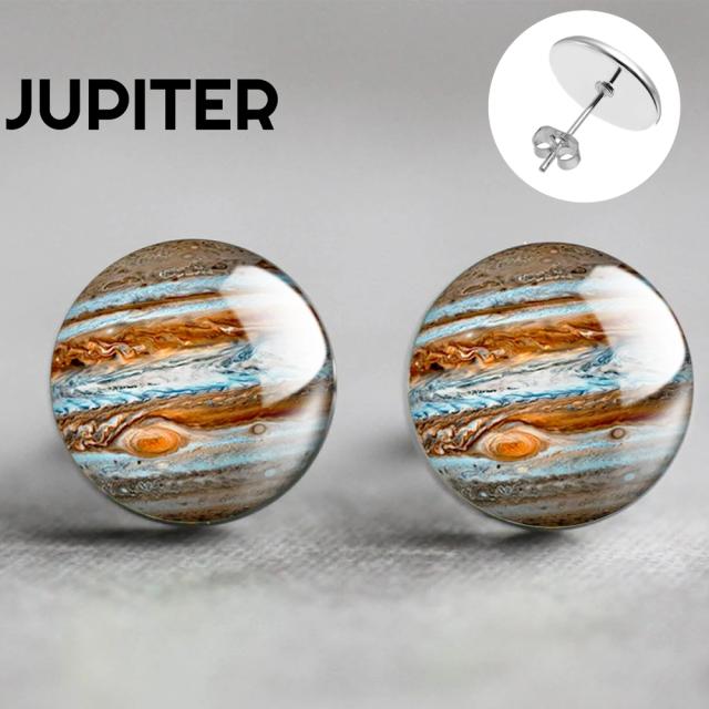 宇宙にあるジュピター(木星)をモチーフにしたカボションをスタッドピアスにセットしたオシャレなファッションピアス。